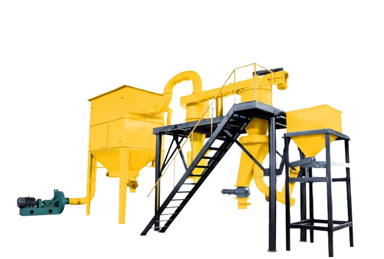 整套分级装置由气流分级机、旋风收集器、脉冲除尘器、高压引风机、电控柜等组成。气流分级机是带有二次进风及立式安装的大叶轮转子的强制型分级机。